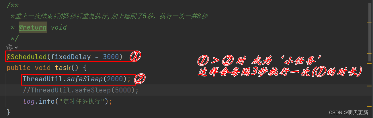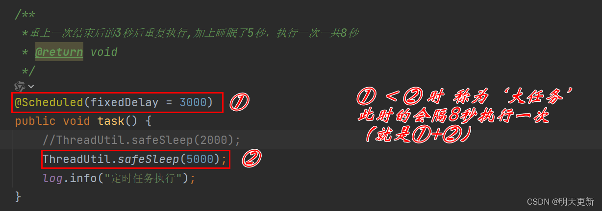 *重上一次结束后的3秒后重复执行,加上睡眠了5秒,执行一次一共8秒