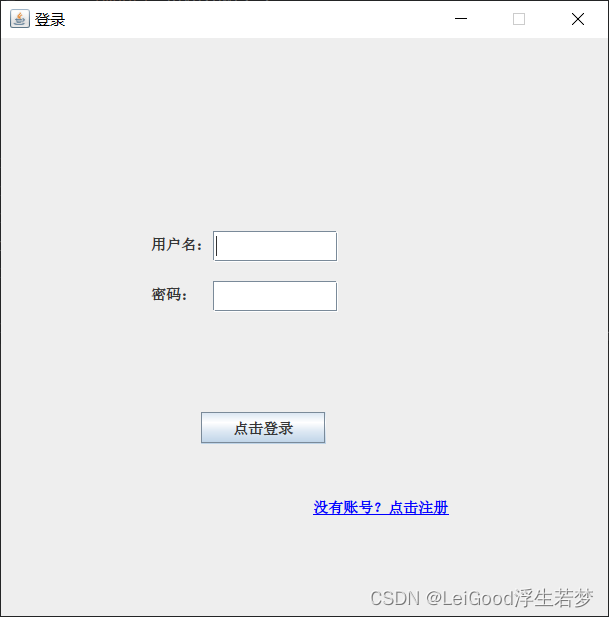 Java登录注册窗体完整代码的实现(连接MYSQL数据库) 在注册窗体,用户名或密码输入不能为空,否则会有弹窗提示,如果输入的用户名存在,也会有弹窗提示。在登录窗体,输入的用户名不存在,也会有弹窗提示,同时用户名或密码不能为空。