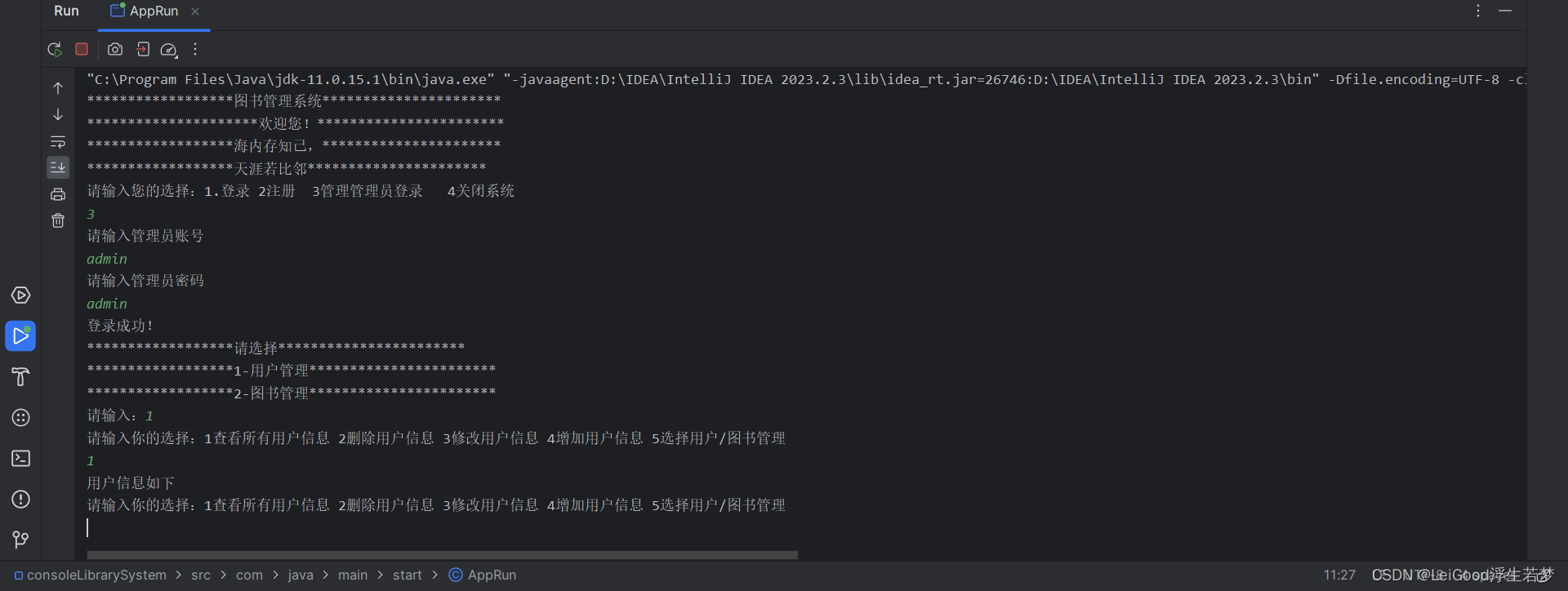 JAVA图书管理系统完整代码实现(连接MYSQL数据库) 本项目是控制台版java图书管理系统,实现了用户的注册登录,用户管理员的登录,图书管理员的登录,用户可以购买图书和查看图书购买记录,用户管理员可以对用户信息进行增删查改,图书管理员可以查看图书信息,以及上架新的图书和修改图书库存。
