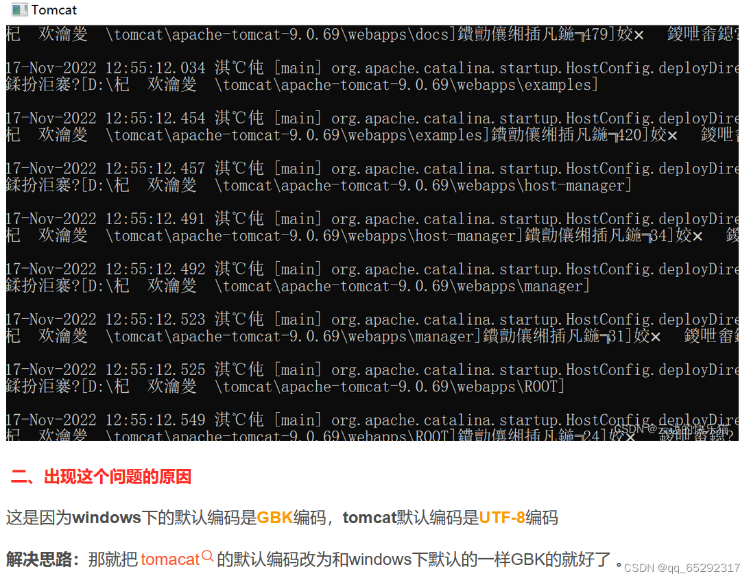 tomcat启动中文 问号 https://blog.csdn.net/Quiet_han/article/details/119520660 启动中文 相同的位置改成GBK