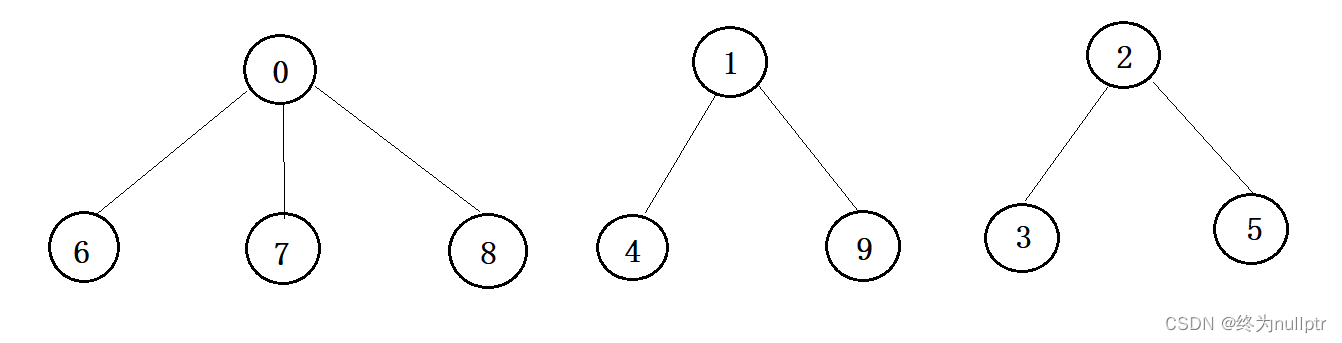 从上图可以看出:编号6,7,8同学属于0号小分队,该小分队中有4人(包含队长0);编号为4和9的同