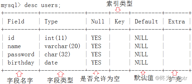 desc 表名;
