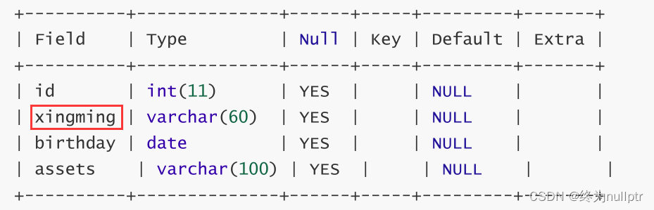 将name列修改为xingming