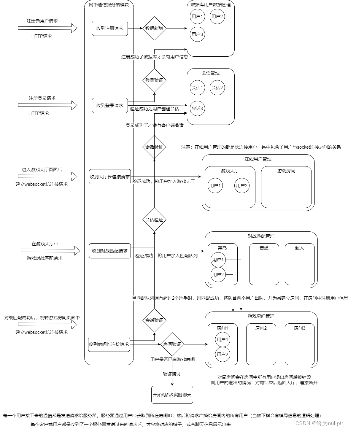 ●用户管理:实现用户注册,用户登录、获取用户信息、用户天梯分数记录、用户比赛场次记录等