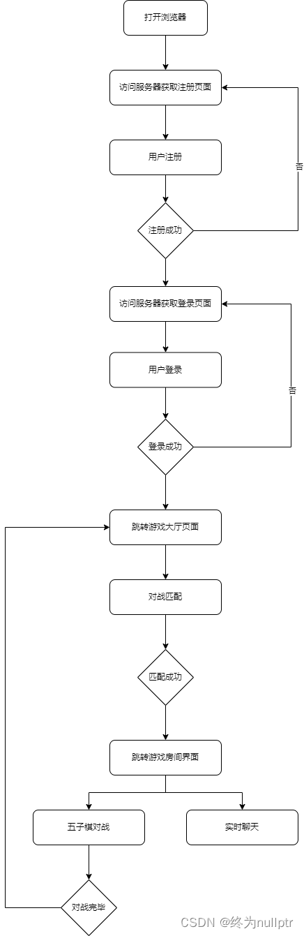 本项目主要实现一个网页版的五子棋对战游戏,其主要支持以下核心功能: