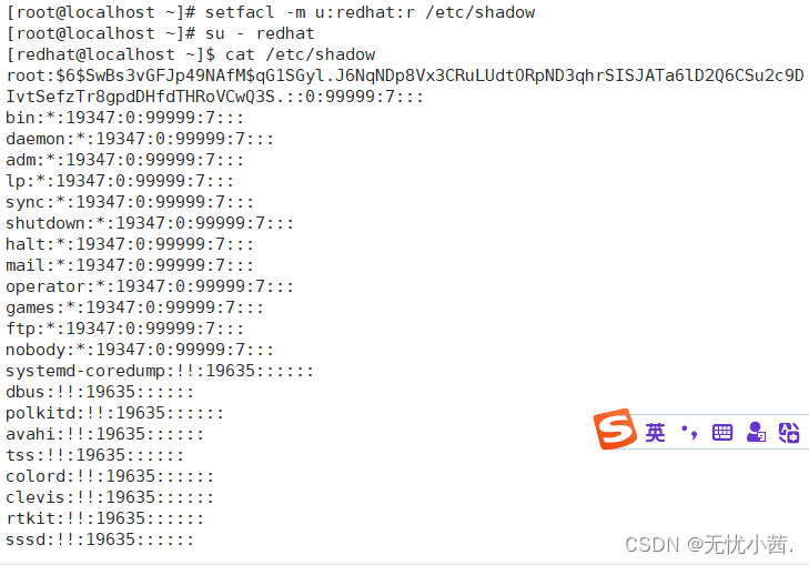 4.让普通用户有能力使用cat文件阅读/etc/shadow文件