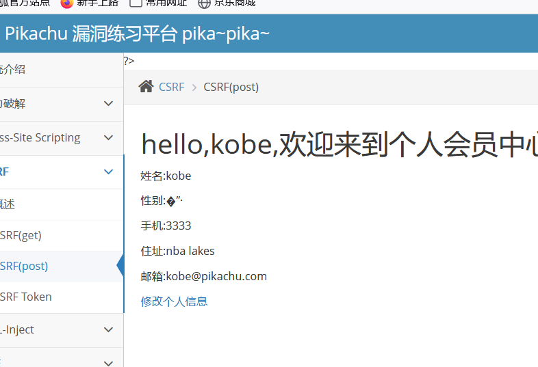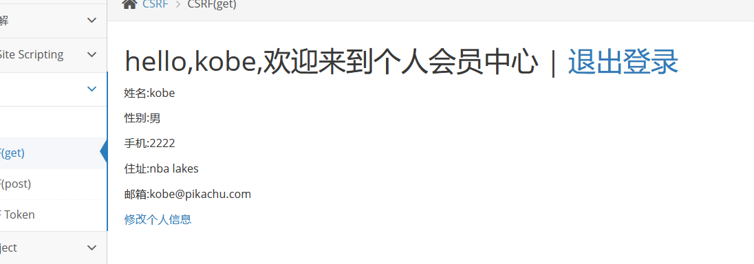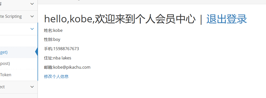 先注册一个账号,用这个账号登录,然后点击修改个人信息(如果登录了发现信息没有显示不出来