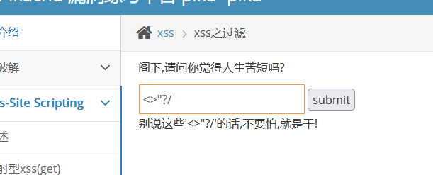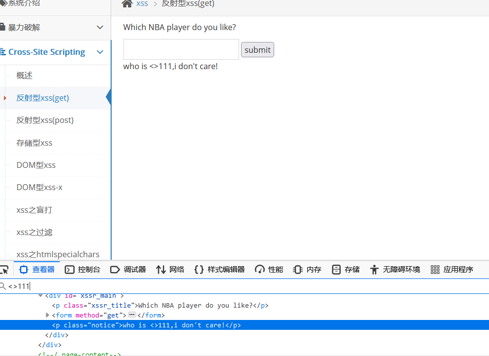 输入特殊字符,查看源码,发现被原封不动的输出,说明没有对输入的内容进行过滤处理