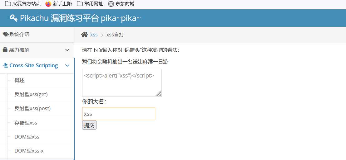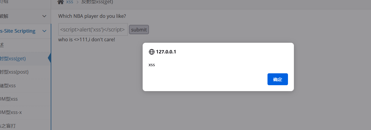返回,继续输入script语句提交,弹出xss窗口,刷新就消失,这就是反射型xss,也就是一次性的