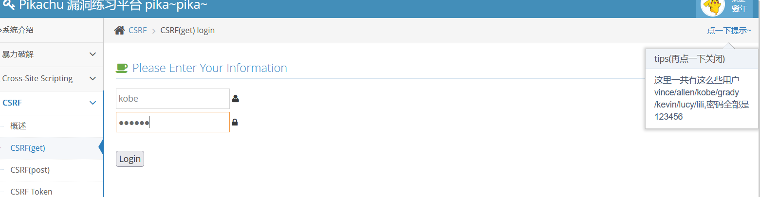 这怎么办呢,可以看到右上角有提示,我们点开发现三个账号密码,其中肯定有一个是正确的,当然我们可以一个一个地试。但是数量多的话我们就不好试了。把这三个记下来,下面用到。
