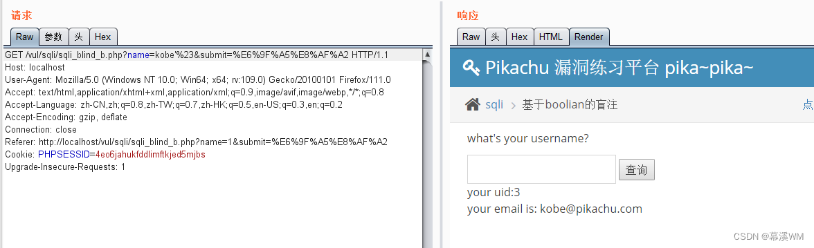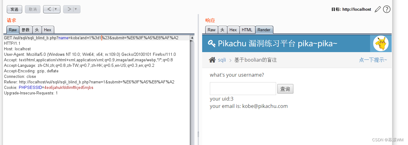 发送给repeater,修改url,记得每次修改url时,有特殊符号都要进行url编码,不然不符合url的格式输入kobe,显示正常