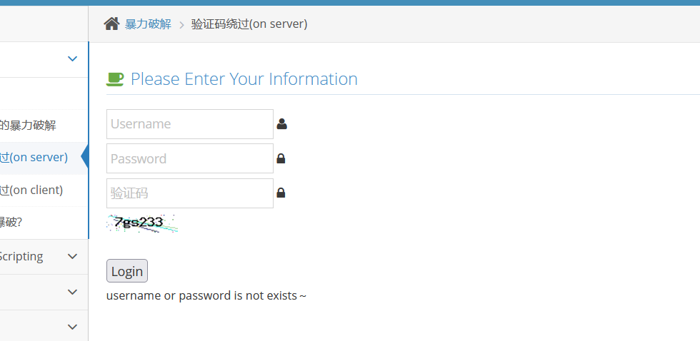随意输入账号密码,输入正确的验证码,登录。然后提示账号密码不存在,验证码改变。