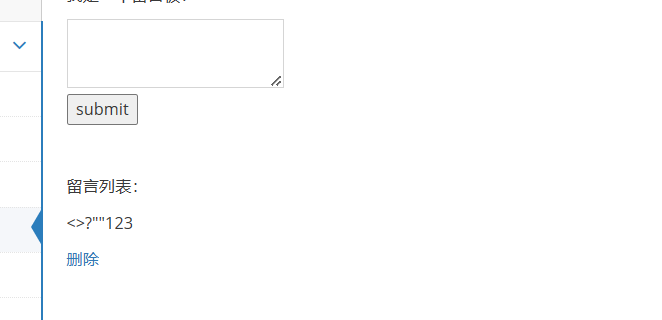 这是一个留言板,我们输入什么信息,下面的留言列表就会永久存储该信息,没有对输入的内容进行过滤处理,包括特殊符号。