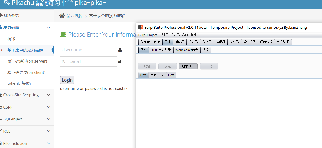 首先打开burp suite拦截,然后在随意输入账号密码,