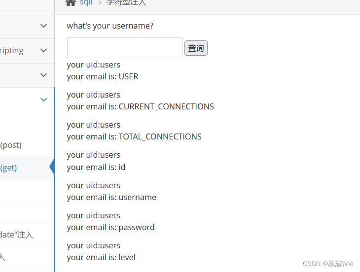 输入一个字母a,返回了两条内容。判断后台sql语句为: