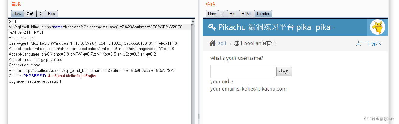 我们前面就知道数据库名叫pikachu,长度是7,那么我们可以来验证一下,输入payload