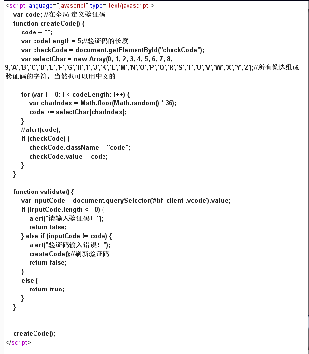 打开码源,发现这个验证码是JavaScript前端随机生成的,每点击一次就随机生成一个验证码,