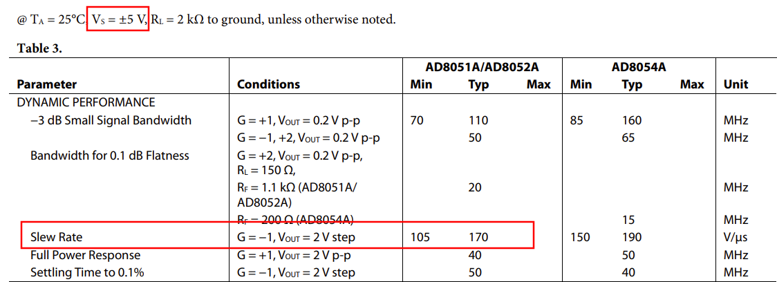 运放选型的注意事项 在使用OP07设计单路运放时,设计目标为将100K到1M的1V峰峰值的正弦波放大2倍,但是测试过程中发现100K频率下输出的波形类似三角波,数据手册说OP07的增益带宽积为0.5MHz,正常来说100K的频率下2倍增益是没问题的。但是数据手册又说OP07的压摆率Slew Rate为0.3V/us,那么根据设计目标可以计算得出运放的压摆率至少要到6.28V/us,可以看到OP07的压摆率完全不够,因此波形会失真。当使用正负5V供电时,AD8051的压摆率最小值在105V/us,因此可以满足设计要求。