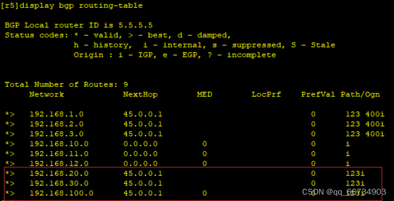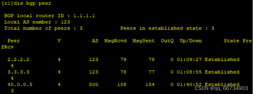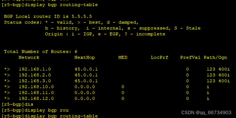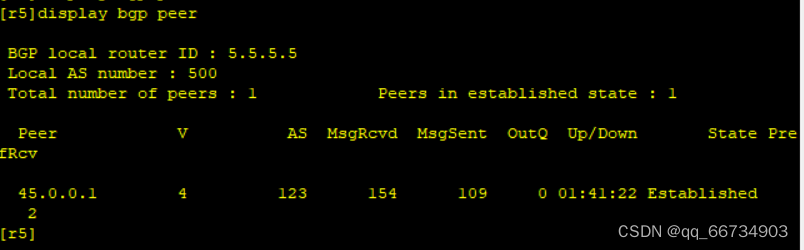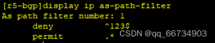 [R5-bgp]peer 45.0.0.1 as-path-filter 1 import查看配置