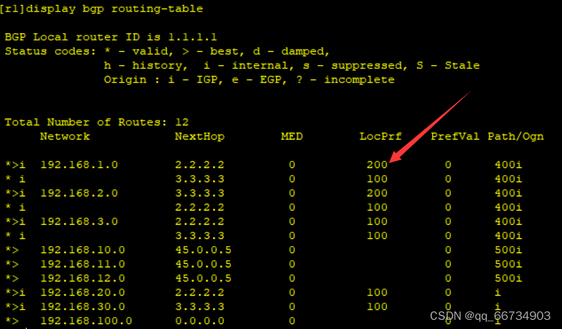 4.使用Local Preference策略,确保R1通过R2到达192.168.1.0/24