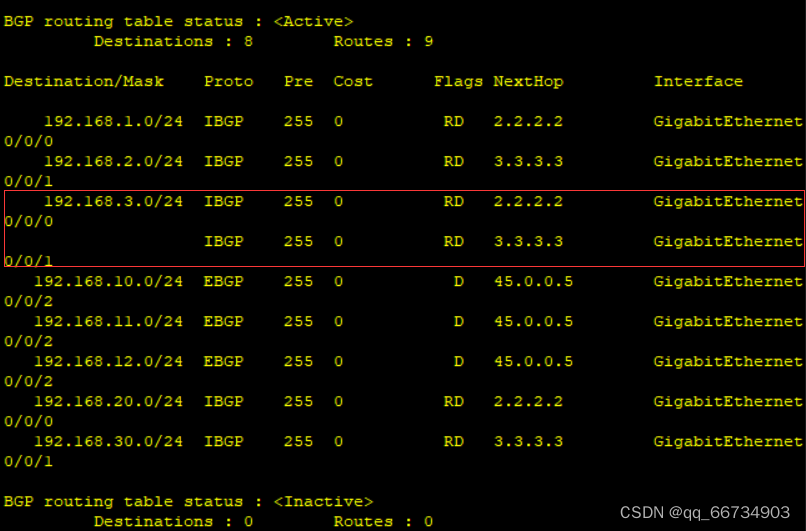 使用display ip routing-table protocol bgp查看是否负载均衡