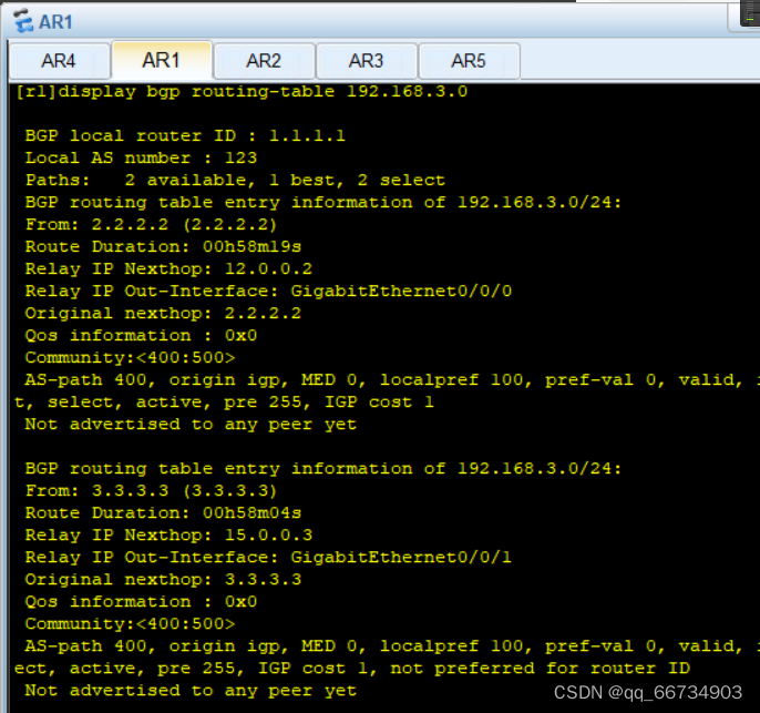 5.使用Local Preference策略,确保R1通过R3到达192.168.2.0/24