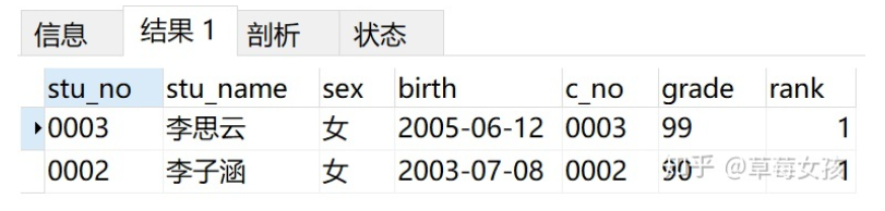 - 第二步:按照rank筛选出第一组,则得到最终的结果如下:
