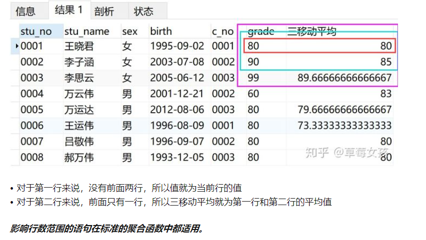 rows between 3 preceing and 1 following #从前面三行和下面一行,总共五行