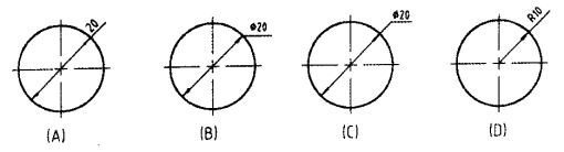A、尺寸线; B、尺寸界线 ; C、引出线