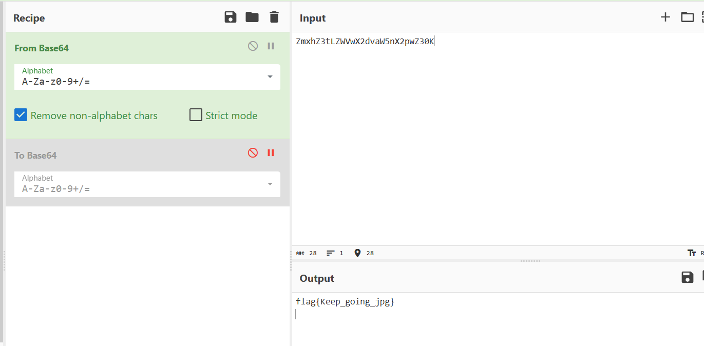 得到了flag{Keep_going_jpg},但是这个flag是错误的。但是这个flag里面的内容就是图片的文件名+文件后缀。说明解题还是看这个图片。