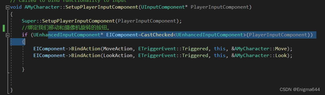 接下来我们进入Character.cpp 文件中,将我们移动代码和摄像机代码写上
