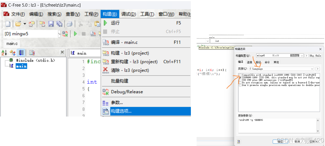 [Error] E:\cfreelz\lz3\main.c:7: error: 'for' loop initial declaration used outside C99 mode