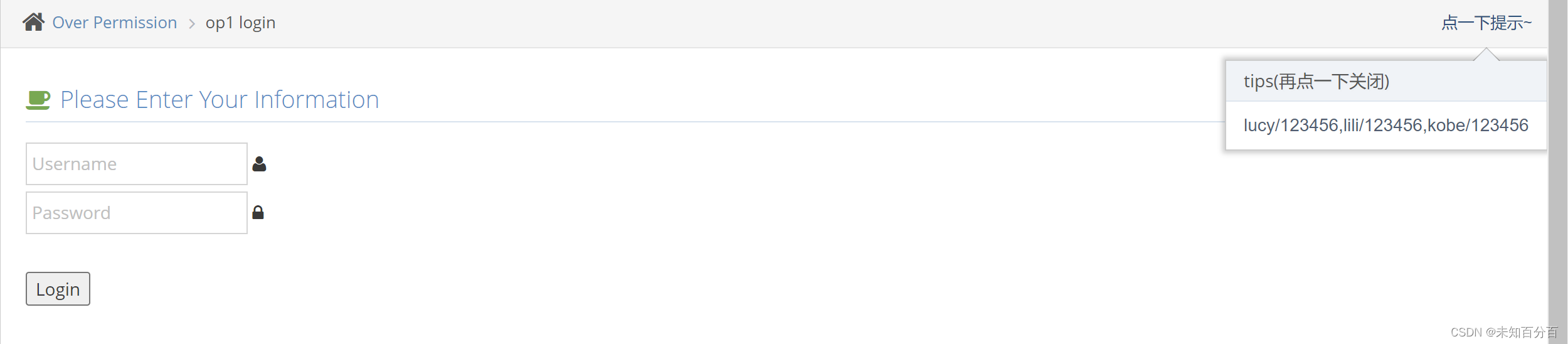 可以看到是一个登录框,并且点击提示可以看到给出的账号和密码,那么就来尝试登录一下: