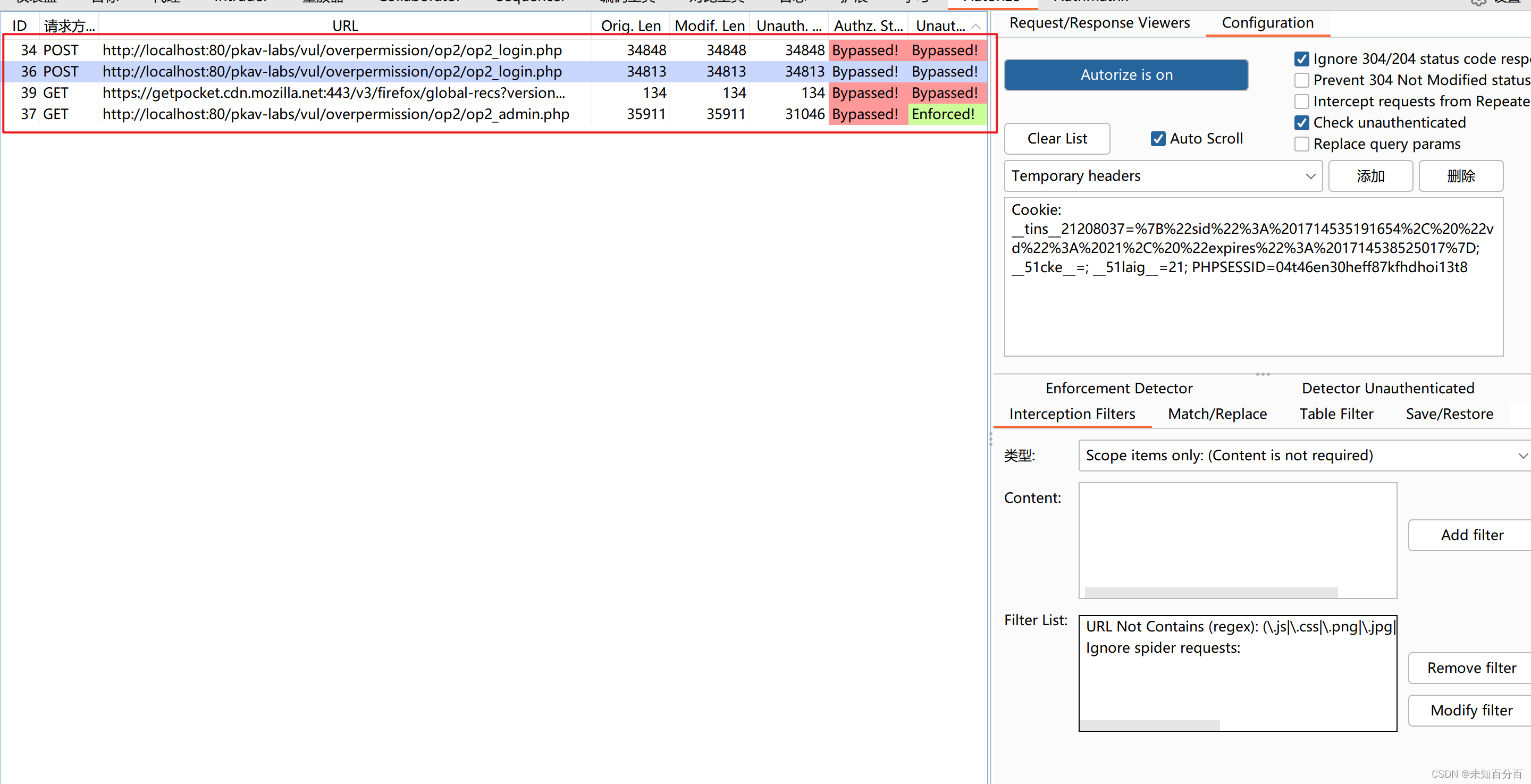 该插件无需任何配置即可工作,但也是高度可定制的,允许配置授权执行条件的粒度以及插件必须测试哪些请求,哪些不需要。可以保存插件的状态并以 HTML 或 CSV 格式导出授权测试报告。