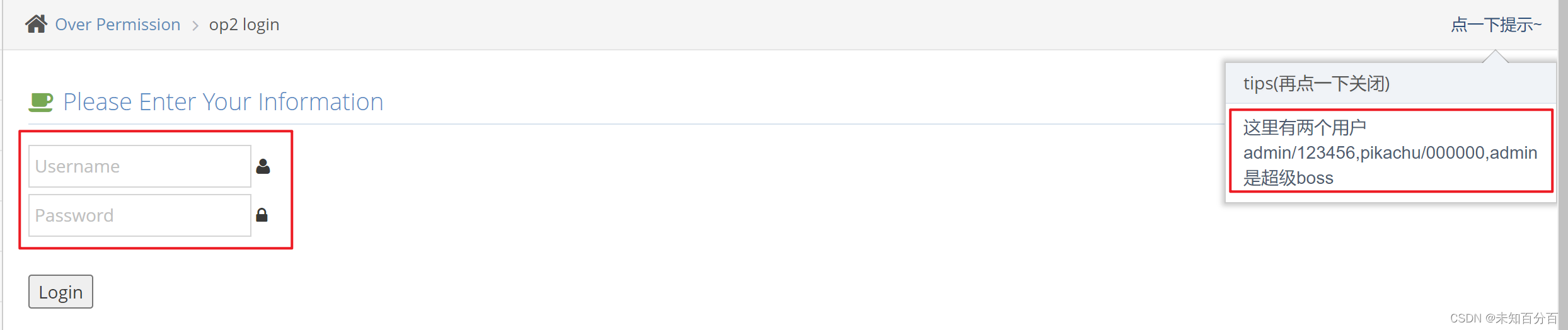 可以看到页面也是一个登录框,并且提示我们这里有两个用户,