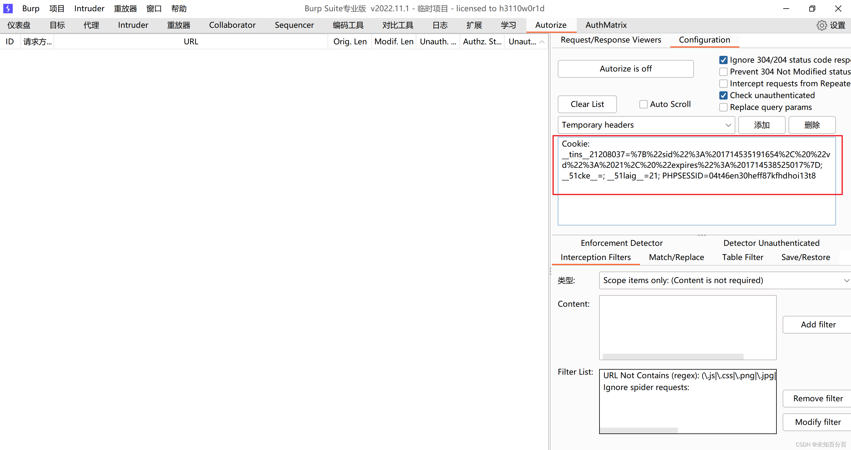 安装方法参考:越权检测 burp插件 autorize 使用-腾讯云开发者社区-腾讯云