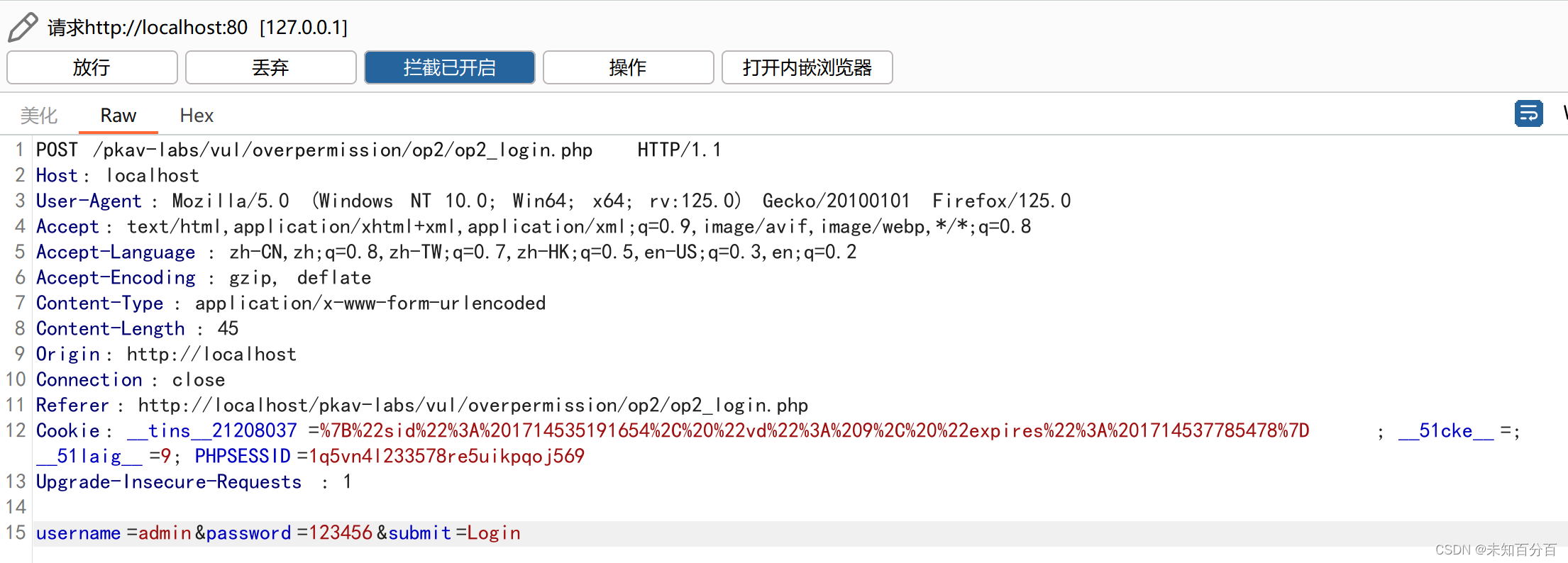 那么试试使用上面的方法,尝试登录pikachu用户,然后抓包将用户名和密码修改为管理员的: