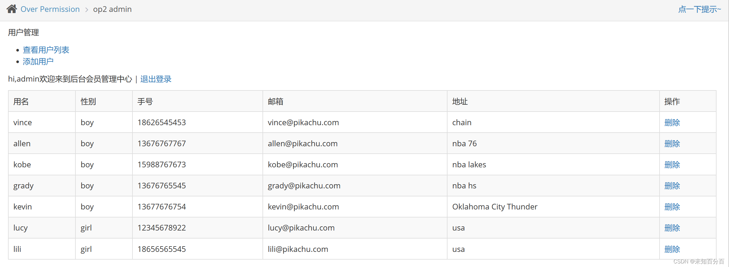 那不用想了,一定是要用低权限的pikachu来越权到admin了