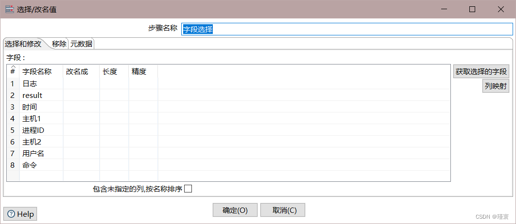 字段选择控件配置如图所示,先获取全部字段,再在移除页面选择多余字段进行删除,Excel输出控件配置可参考上面的图