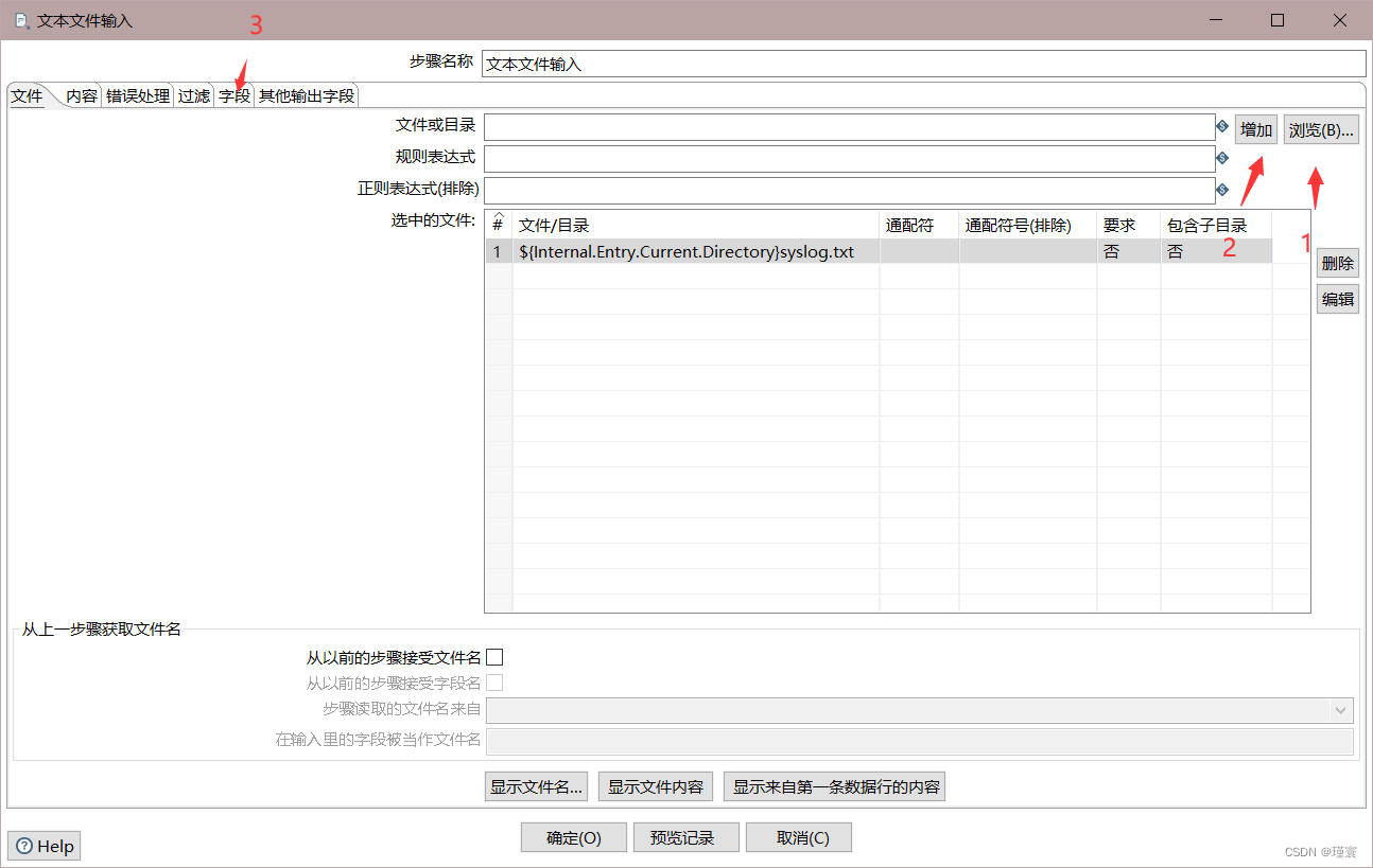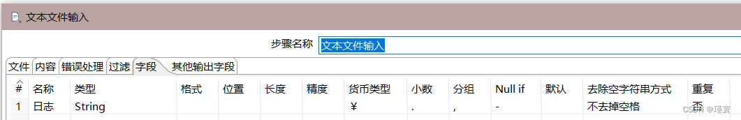 文本文件输入控件的配置如下图所示