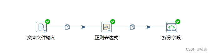 使用文本文件输入控件和正则表达式控件。文本文件从文档中按行获取日志信息,并将其指定为“日志”字段输出到正则表达式控件,再使用正则表达式控件进行正则表达式的字符串匹配及