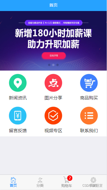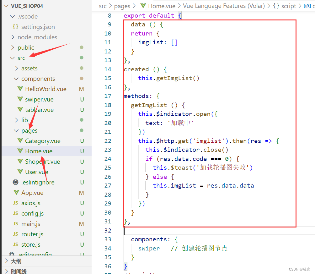 在src\pages\Home.vue组件中,通过axios的方式来请求轮播图接口,展示数据。