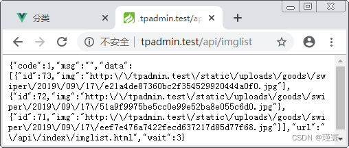 通过浏览器打开http://tpadmin.test/api/imglist,进行访问测试,结果如下。