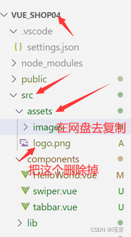 按钮图片放在src\assets\images目录下,图片素材需要从配套源码中复制过来其中src\assets\logo.png这个文件已经用不到了,删除即可。