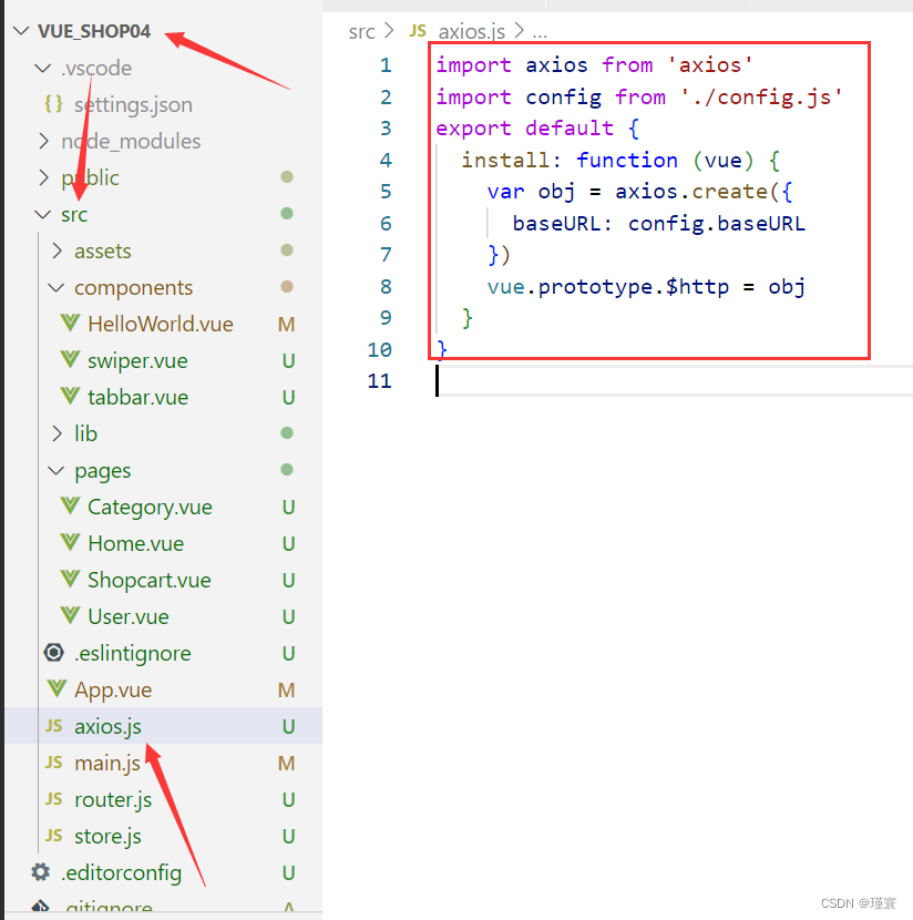 安装完成后,创建src\axios.js脚本文件,示例代码如下。