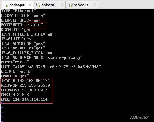修改ip:vi /etc/sysconfig/network-scripts/ifcfg-ens33