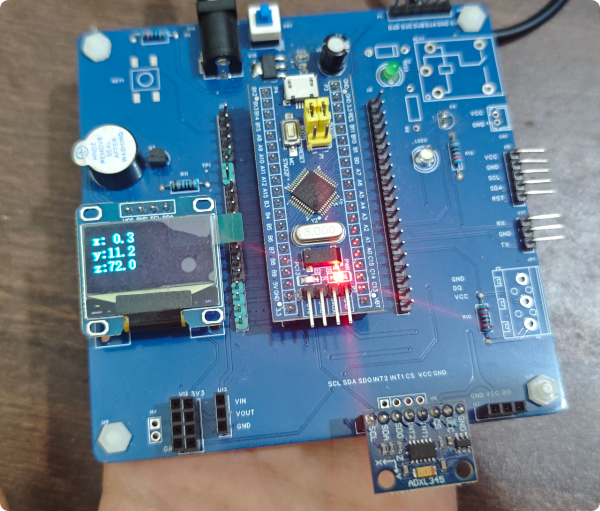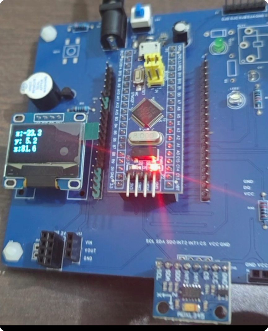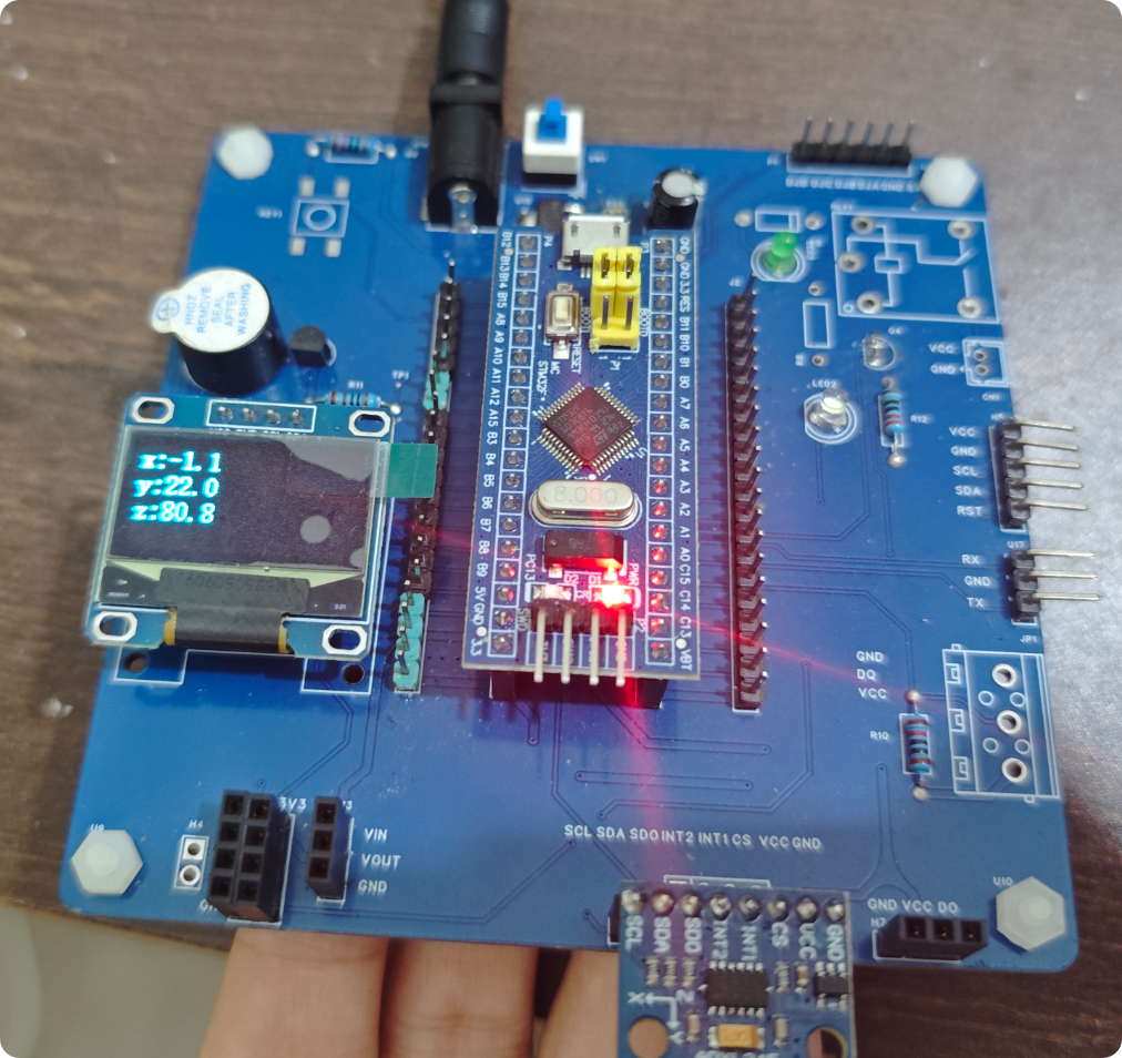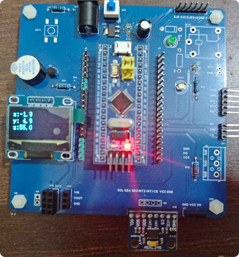 - 缓慢倾斜 ADXL345 传感器(如绕 X 轴 / Y 轴旋转),观察 OLED 上值是否随倾斜角度实时变化。
