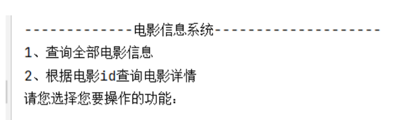 System.out.println("2、根据id查询某个电影的详细信息展示");