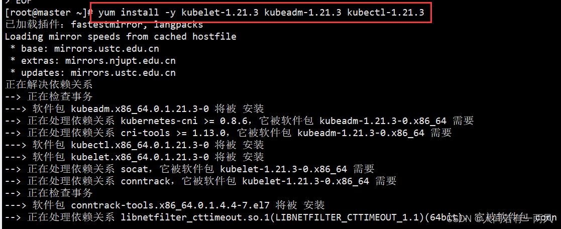 yum install -y kubelet-1.21.3 kubeadm-1.21.3 kubectl-1.21.3