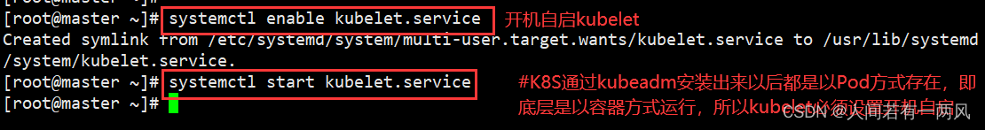 #K8S通过kubeadm安装出来以后都是以Pod方式存在,即底层是以容器方式运行,所以kubelet必须设置开机自启